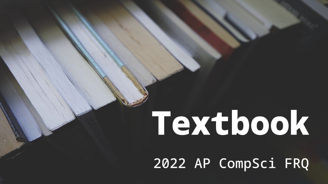 Free response 2 from the 2022 AP Computer Science exam has you working with a class named Book that contains information about a book, and a subclass Textbook that extends Book. You are given the complete Book class, but have to write Textbook from scratch.